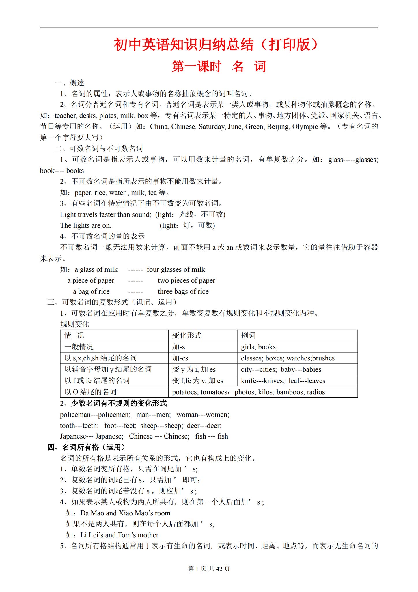 三、初中英语知识归纳总结