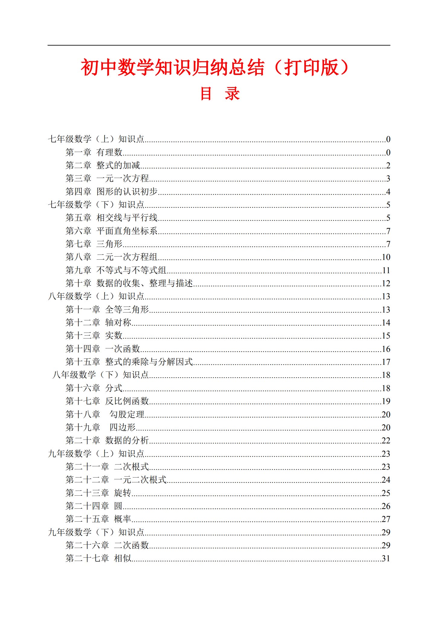 二、初中数学知识归纳总结