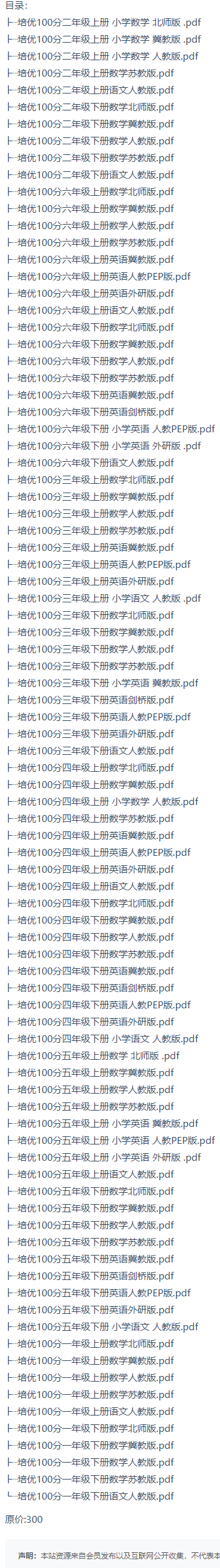 王朝霞培优100分电子版资料,包含小学1-6年级语文、数学和英语上下册,适合人教版、北师版、冀教版、苏教版、英语外研版等版本的使用,含答案解析,高清PDF格式,无水印,可以直接打印会员百度网盘免费下载。