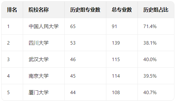 历史组专业总数:1029 个(占 985 本科专业总数的 32.7%)
